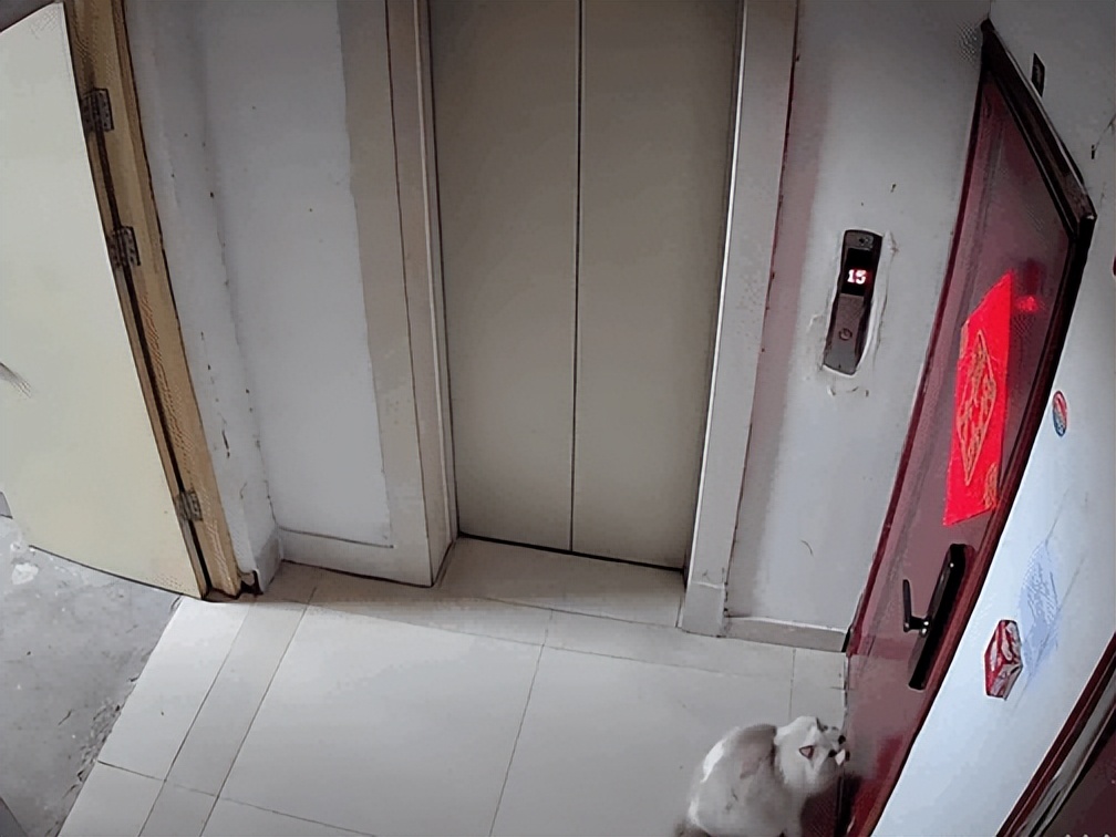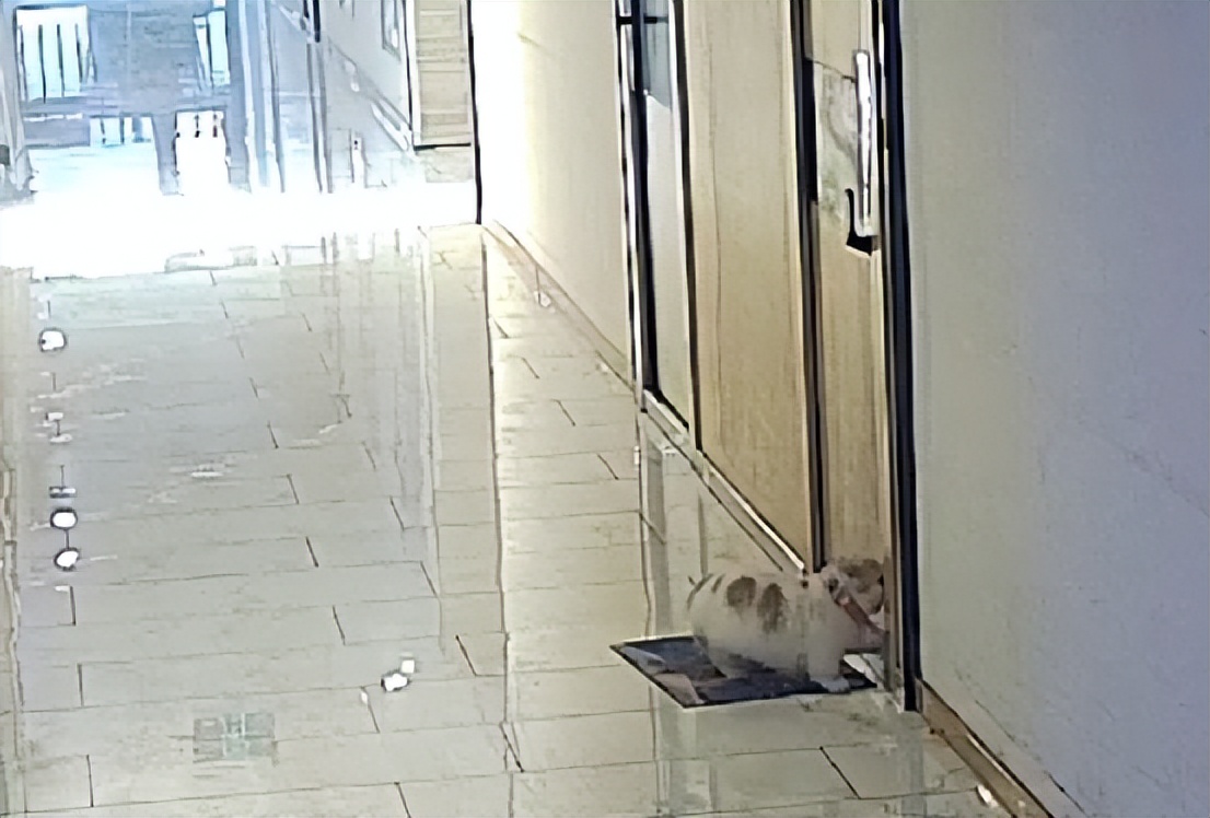 一无所获后,它只能又回到门口用爪子扒拉了两下门,祈求里面的人能听见它的敲门声。