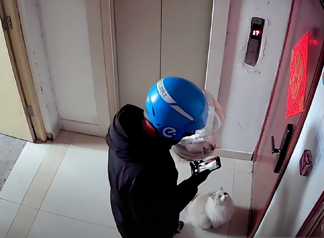 小姐姐原本让外卖小哥把饭放门口,小哥好像读懂的猫咪的请求,随口问了句:门口有个猫没事吧。
