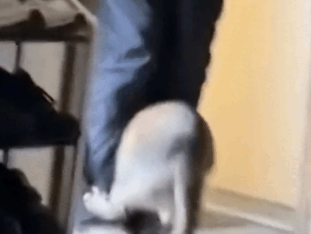 这下,猫咪着急了,先在门口扒门,里面没回应,又用爪子刨地,还是没回应。